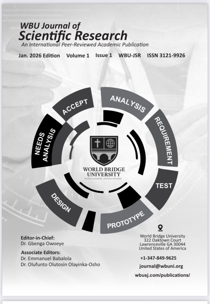 Published by World Bridge University – College of Research & Innovation, this publication reflects a forward thinking approach to research that integrates multiple disciplines. It empowers scholars and practitioners to generate impactful ideas, promote academic excellence, and contribute to a more innovative and sustainable future.